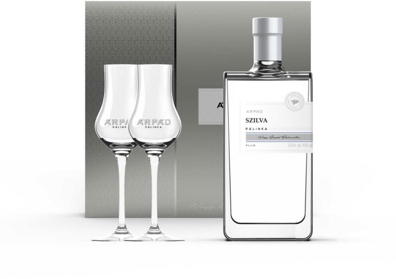 Árpád Pálinka Silver Körte Pálinka díszdobozban 0, 5 L + 2 db Tulipán pálinkáspohár (40%)